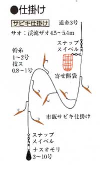 | 夏から秋には、湾内や港内に回遊してくるので、市販のサビキ仕掛けで家族連れでも楽しめ る。小アジ、小サバなども回遊してくるが、イワシの泳層はかなり浅い。群れを集め、釣った後 でも散らさないために、寄せ餌が必要である。寄せ餌はまいてもよいし、寄せ餌袋を仕掛けに つけてもよい。最初の1尾がハリ掛かりすると、その振動がサビキに伝わって誘いになるので、 サオを上げずに追い食いさせる。 |